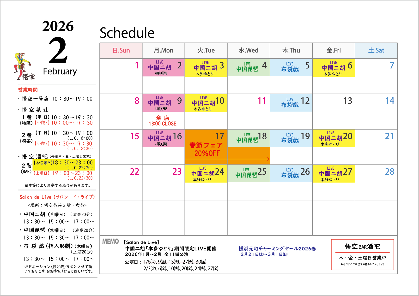 Salon de Live 二胡奏者「本多ゆとり」2026年1月~2月≪全11回≫期間限定LIVE開催決定!