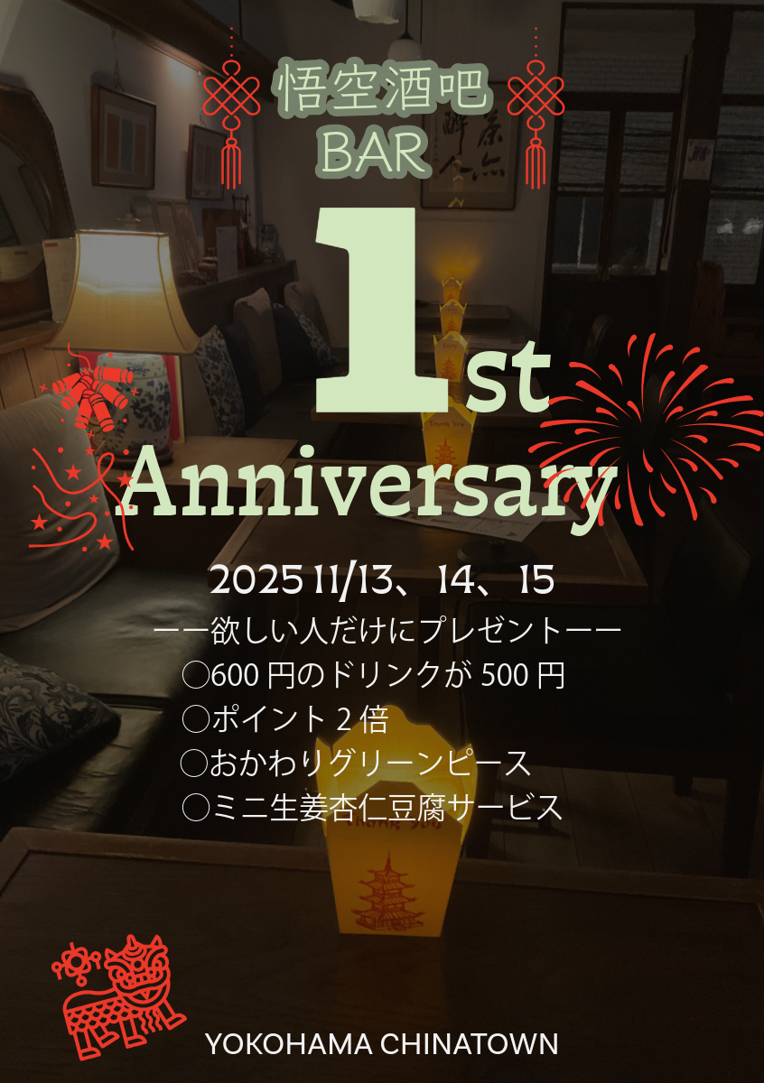 悟空酒吧BARが11月15日で1周年を迎えます!2025.11.10